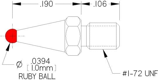 1-72 Thds, Ø1.0mm Ruby Ball X .190″ Long.