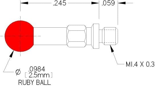 M1.4 Thds, Ø2.5mm Ruby Ball X .245″ Long.