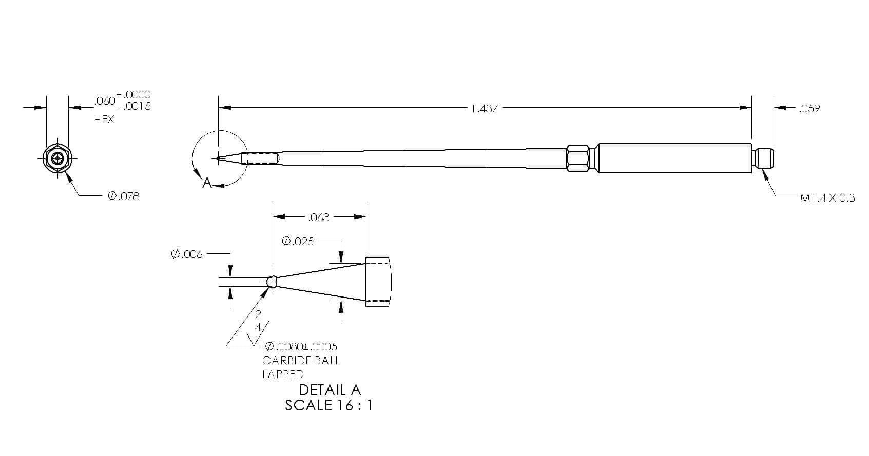 M1.4 Thds, Ø.008″ Carbide Ball X 1.437″ Long.