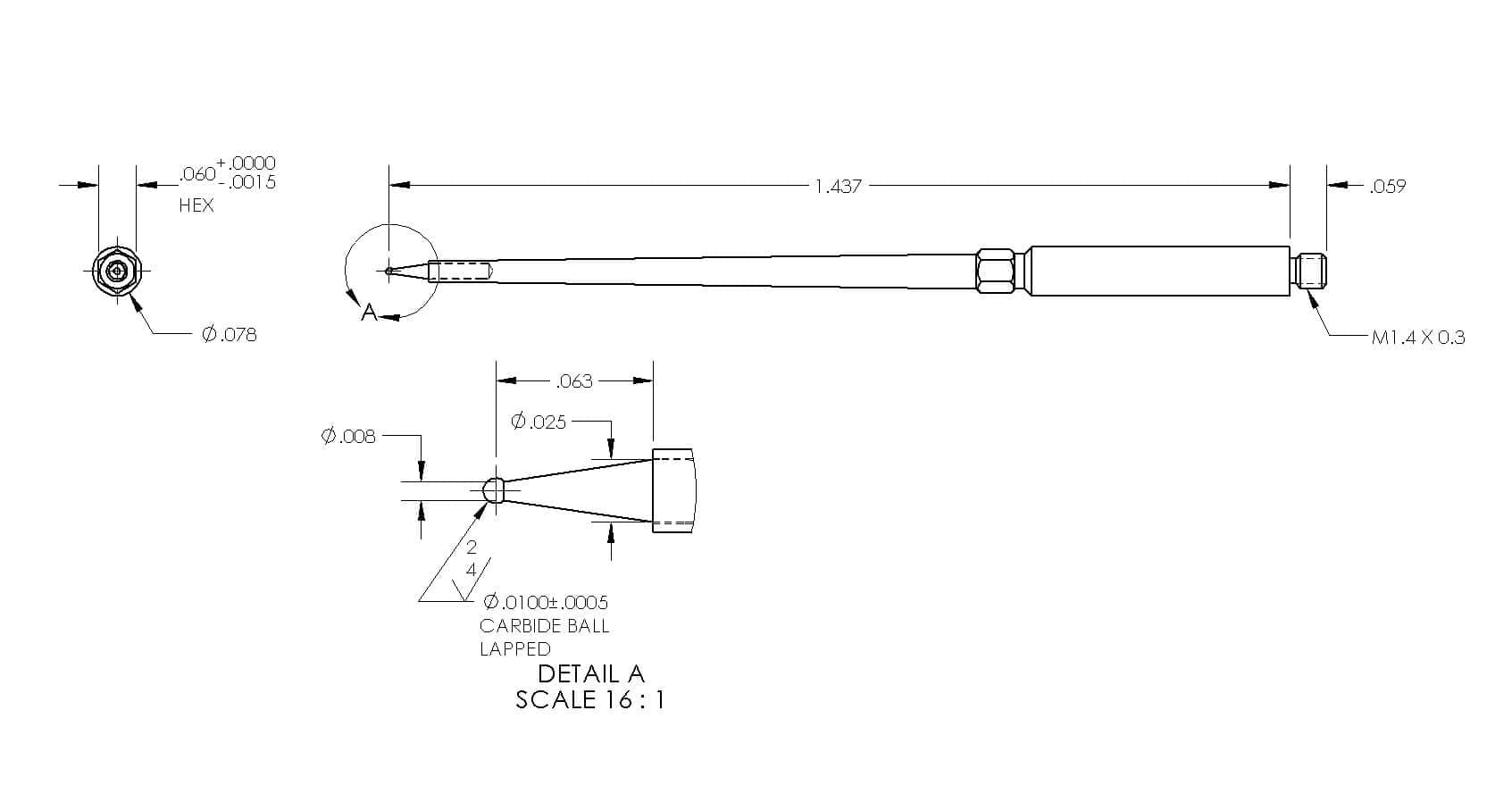M1.4 Thds, Ø.010″ Carbide Ball X 1.437″ Long.