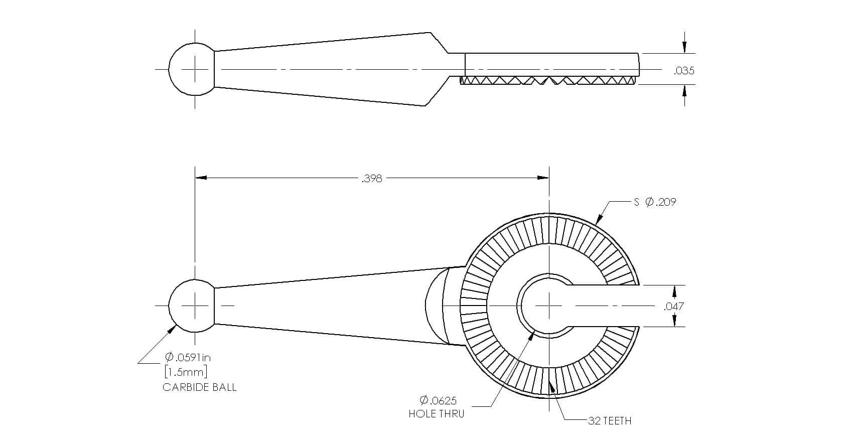 Ratchet Style Mount, Ø1.5mm Carbide Ball X .398″ Long.
