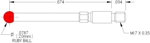 M1.7 Thds, Ø2.0mm Ruby Ball X .674″ Long.
