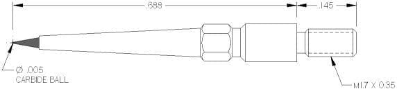 M1.7 Thds, Ø.005″ Carbide Ball X .688″ Long.