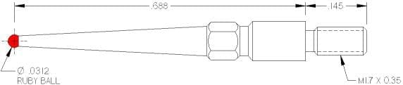 M1.7 Thds, Ø.031″ Ruby Ball X .688″ Long.