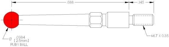 M1.7 Thds, Ø2.5mm Ruby Ball X .688″ Long.