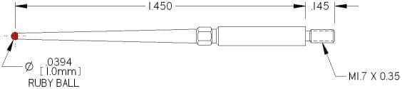 M1.7 Thds, Ø1.0mm Ruby Ball X 1.450″ Long.