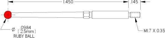 M1.7 Thds, Ø2.5mm Ruby Ball X 1.450″ Long.