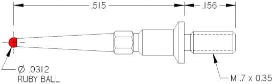 M1.7 Thds, Ø.031″ Ruby Ball X .515″ Long.