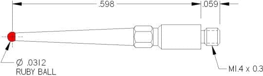 M1.4 Thds, Ø.031″ Ruby Ball X .598″ Long.