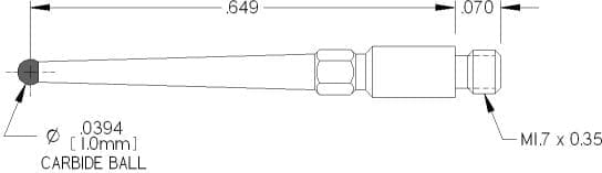 M1.7 Thds, Ø1.0mm Carbide Ball X .649″ Long.