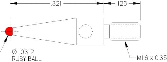 M1.6 Thds, Ø.031″ Ruby Ball X .321″ Long.
