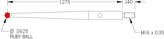M1.6 Thds, Ø.062″ Ruby Ball X 1.276″ Long.