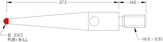 M1.6 Thds, Ø.031″ Ruby Ball X .573″ Long.
