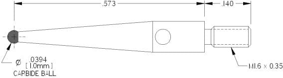 M1.6 Thds, Ø1.0mm Carbide Ball X .573″ Long.