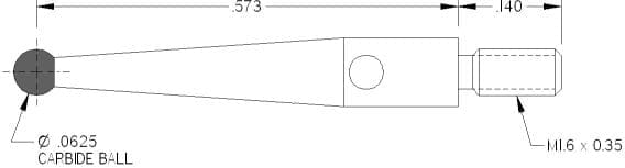 M1.6 Thds, Ø.062″ Carbide Ball X .573″ Long.