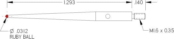 M1.6 Thds, Ø.031″ Ruby Ball X 1.293″ Long.