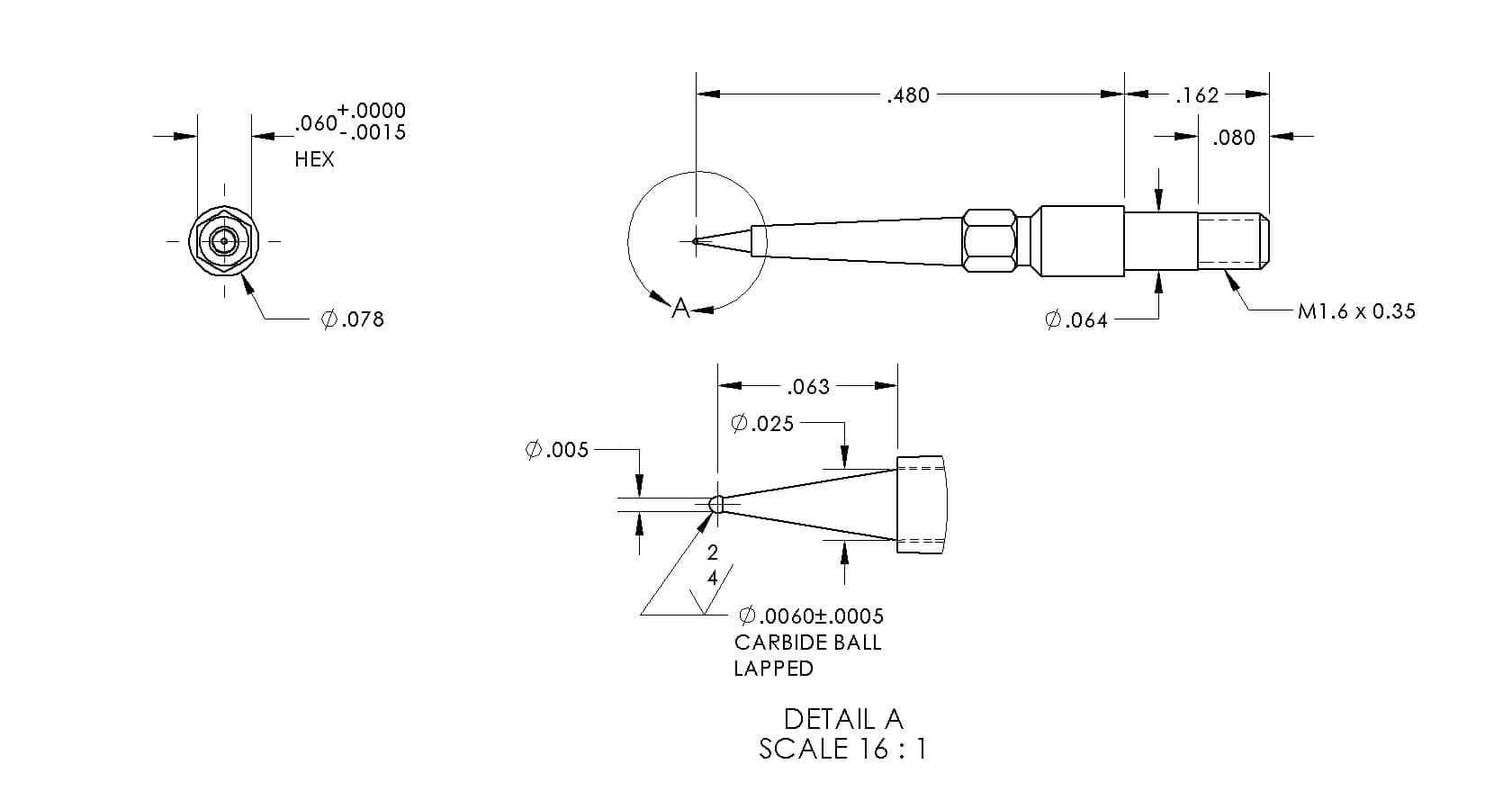 M1.6 Thds, Ø.006″ Carbide Ball X .480″ Long.