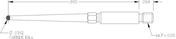 M1.7 Thds, Ø.031″ Carbide Ball X .860″ Long.