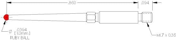 M1.7 Thds, Ø1.0mm Ruby Ball X .860″ Long.
