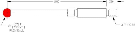 M1.7 Thds, Ø2.0mm Ruby Ball X .860″ Long.