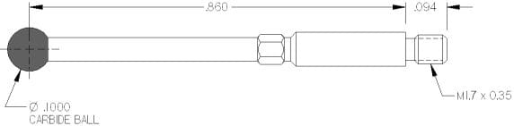 M1.7 Thds, Ø.100″ Carbide Ball X .860″ Long.
