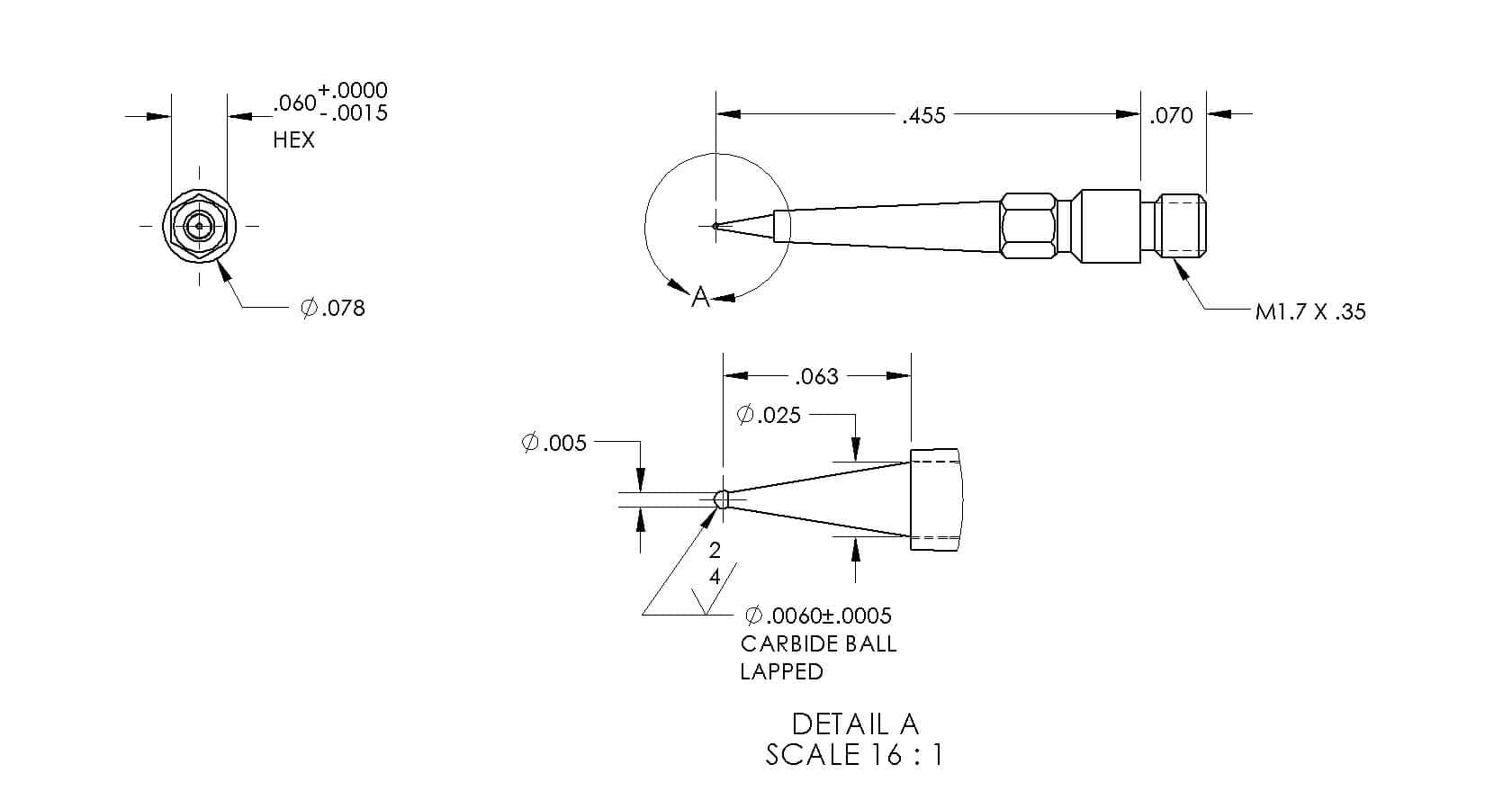 M1.7 Thds, Ø.006″ Carbide Ball X .455″ Long.