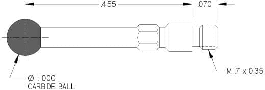 M1.7 Thds, Ø.100″ Carbide Ball X .455″ Long.