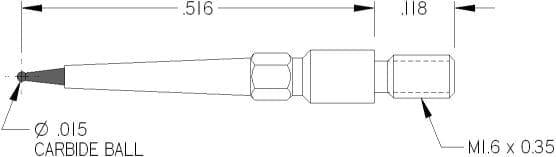 M1.6 Thds, Ø.015″ Carbide Ball X .516″ Long.