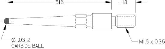 M1.6 Thds, Ø.031″ Carbide Ball X .516″ Long.