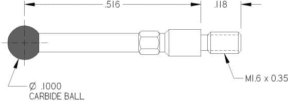 M1.6 Thds, Ø.100″ Carbide Ball X .516″ Long.