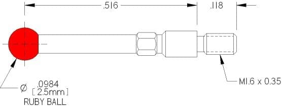M1.6 Thds, Ø2.5mm Ruby Ball X .516″ Long.