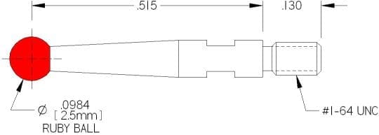 1-64 Thds, Ø2.5mm Ruby Ball X .515″ Long.