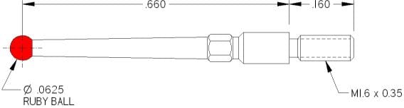 M1.6 Thds, Ø.062″ Ruby Ball X .660″ Long.