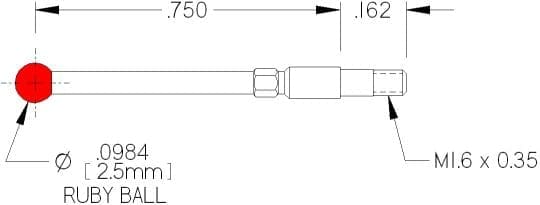 M1.6 Thds, Ø2.5mm Ruby Ball X .750″ Long.