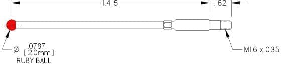 M1.6 Thds, Ø2.0mm Ruby Ball X 1.415″ Long.