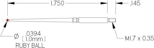 M1.7 Thds, Ø1.0mm Ruby Ball X 1.750″ Long.
