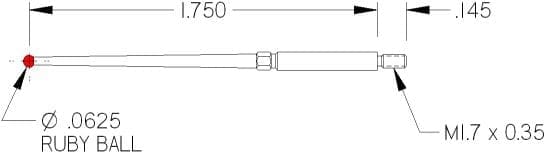 M1.7 Thds, Ø.062″ Ruby Ball X 1.750″ Long.