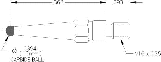 M1.6 Thds, Ø1.0mm Carbide Ball X .366″ Long.