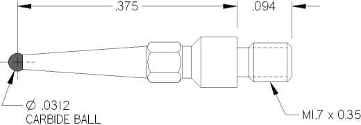 M1.7 Thds, Ø.031″ Carbide Ball X .375″ Long.