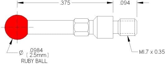 M1.7 Thds, Ø2.5mm Ruby Ball X .375″ Long.
