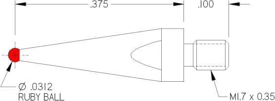 M1.7 Thds, Ø.031″ Ruby Ball X .375″ Long.