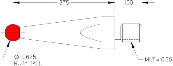 M1.7 Thds, Ø.062″ Ruby Ball X .375″ Long.
