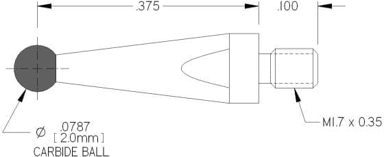 M1.7 Thds, Ø2.0mm Carbide Ball X .375″ Long.