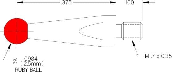 M1.7 Thds, Ø2.5mm Ruby Ball X .375″ Long.