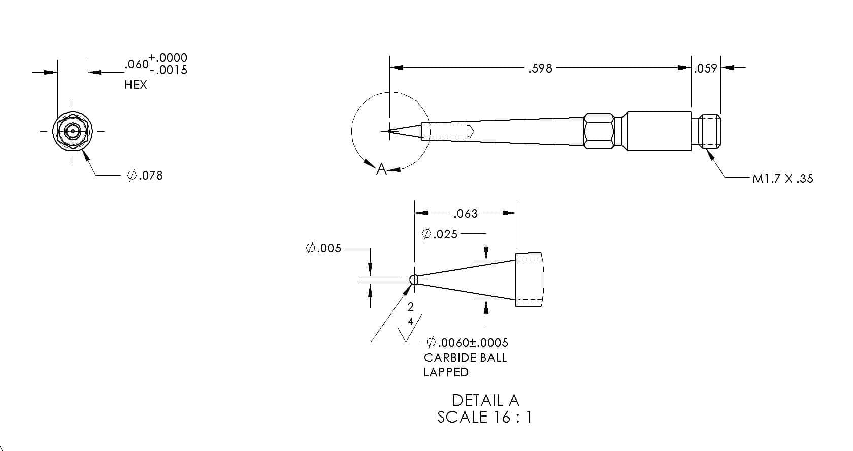 M1.7 Thds, Ø.006″ Carbide Ball X .598″ Long.