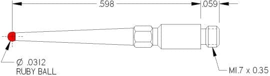 M1.7 Thds, Ø.031″ Ruby Ball X .598″ Long.