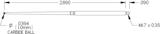 M1.7 Thds, Ø1.0mm Carbide Ball X 2.890″ Long.