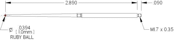 M1.7 Thds, Ø1.0mm Ruby Ball X 2.890″ Long.