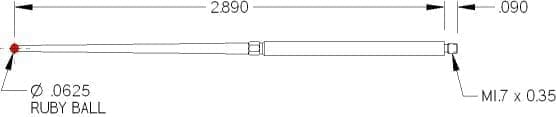 M1.7 Thds, Ø.062″ Ruby Ball X 2.890″ Long.