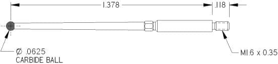 M1.6 Thds, Ø.062″ Carbide Ball X 1.378″ Long.
